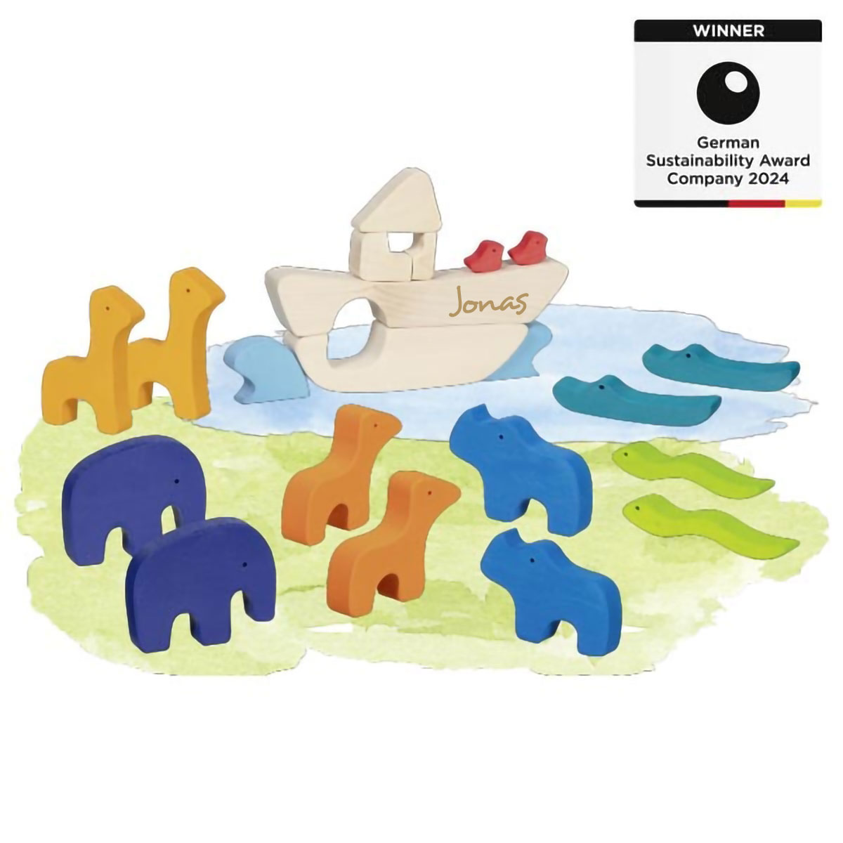 Mit der Arche Noah lässt sich sowohl Geschichte nachspielen als auch kreativ frei bauen. Zu immer neuen Geschichten und Bauwerken laden die bunten Holzfiguren ein, die durch ihre besondere Haptik und die besonderen Formen die Lust an der spielerischen Freiheit unterstützen und darüberhinaus fördern..
